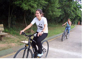 Myrian apareceu dizendo que não sabia pedalar. Colocada sobre a bicicleta mostrou que sabia sim, e muito bem. "Tenho medo de pedalar com gente por perto e pavor de trânsito", confessou. Um pouco de treinamento e aos poucos perdeu completamente seus medos. Na foto dentro do parque aparece toda sorriso, feliz.